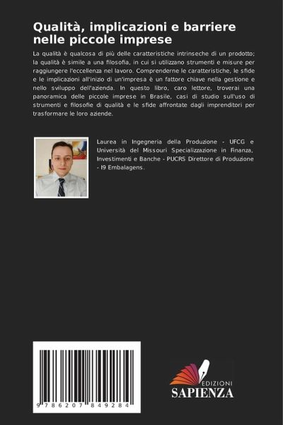 La qualità è qualcosa di più delle caratteristiche intrinseche di un prodotto; la qualità è simile a una filosofia, in cui si utilizzano strumenti e misure per raggiungere l'eccellenza nel lavoro. Comprenderne le caratteristiche, le sfide e le implicazioni all'inizio di un'impresa è un fattore chiave nella gestione e nello sviluppo dell'azienda. In questo libro, caro lettore, troverai una panoramica delle piccole imprese in Brasile, casi di studio sull'uso di strumenti e filosofie di qualità e le sfide affrontate dagli imprenditori per trasformare le loro aziende.