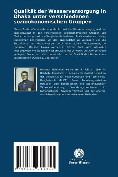 Dieses Buch befasst sich hauptsächlich mit der Wasserversorgung und der Wasserqualität in den verschiedenen sozioökonomischen Gruppen von Dhaka, der Hauptstadt von Bangladesch. In diesem Buch werden auch einige Maßnahmen beschrieben, um das Wasserdefizit zu verringern und die Erschöpfung des Grundwassers durch eine sichere Wassernutzung zu reduzieren. Darüber hinaus werden in diesem Buch auch sekundäre Wasserquellen wie die Regenwassernutzung beschrieben. Die Autoren haben genügend Proben im Labor untersucht, um die Qualität des Wassers aus verschiedenen Quellen zu überprüfen.