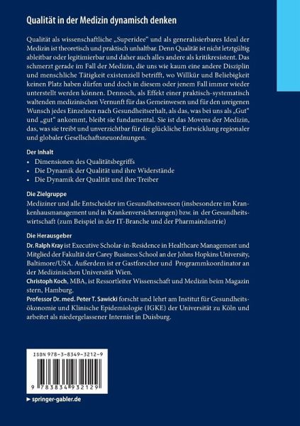 Qualität als wissenschaftliche "Superidee" und als generalisierbares Ideal der Medizin ist theoretisch und praktisch unhaltbar und unfruchtbar, weil Qualität nicht letztgültig ableitbar oder legitimierbar und daher auch alles andere als kritikresistent ist. Das schmerzt gerade im Fall der Medizin, die uns wie kaum eine andere Disziplin und menschliche Tätigkeit existenziell betrifft und wo Willkür und Beliebigkeit keinen Platz haben dürfen und doch in diesem oder jenem Fall immer wieder unterstellt werden können. Der Ruf nach Qualität in der Medizin ist daher vielleicht auch ein nostalgischer Reflex auf die zunehmende Komplexität der Gesellschaft, in der wir leben. Dennoch, als Effekt einer praktisch-systematisch waltenden medizinischen Vernunft für das Gemeinwesen und für den Einzelnen, als das, was bei uns als "Gut" und "gut" ankommt, bleibt sie fundamental. Sie ist das Movens der Medizin, was sie treibt und was unverzichtbar ist für die glückliche Entwicklung regionaler und globaler Gesellschaftsneuordnungen. Wider den vorherrschenden Wirtschafts-, Markt-, Medien- und Politikdruck zählt und bleibt das, was beim Menschen fraglos als dessen ureigener Gesundheitserhalt, gewissermaßen als Gesundheitszugewinn oder Gesundheitswiedergewinn der Fall ist. Dafür, um dies für unsere Zeit deutlicher zu sehen, dieser Band.