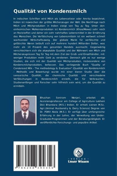 In indischen Schriften wird Milch als Lebenselixier oder Amrita bezeichnet. Indien ist inzwischen der größte Milcherzeuger der Welt. Die Nachfrage nach Milch und Milchprodukten in Indien steigt von Tag zu Tag. Unter den einheimischen Molkereiprodukten ist Kondensmilch (Khoa/Mawa) sehr reich an Feststoffen und daher ein sehr nahrhaftes Lebensmittel in der Ernährung des Menschen. Die Verfälschung von Lebensmitteln ist ein weltweit schnell wachsender Wirtschaftszweig. Der globale Markt für verfälschte und gefälschte Waren beläuft sich auf mehrere hundert Milliarden Dollar, was mehr als 10 Prozent des gesamten Handels ausmacht. Gegenwärtig verschlechtern sich die akzeptable Qualität und der Nährwert von Milch und Milcherzeugnissen Tag für Tag mit dem Ziel der Groß- und Einzelhändler, mit weniger Produktion mehr Geld zu verdienen. Dennoch gibt es nur wenige Studien, die sich mit der Qualität von Milchprodukten, insbesondere von Kondensmilchprodukten, befassen. Das vorliegende Buch "Quality of Condensed Milk - The methodology & Evaluation" (Qualität von Kondensmilch - Methodik und Bewertung) wurde mit einer klaren Studie über die sensorische Qualität, die chemische Qualität und verschiedene Verfälschungen in Kondensmilch erstellt, die für Verbraucher, Studienanfänger und Forscher sehr hilfreich sein wird, um die Qualität zu ermitteln.