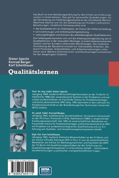 Bei der Einführung von Qualitätsmanagement in produzierenden Unternehmen verfügen die Mitarbeiter oft über hohe fachliche Kompetenz, jedoch kaum über die Erfahrung für die Schulung von Personal. Sie suchen deshalb nach praxisnahen und -erprobten Verfahren zur arbeitssystembezogenen Vermittlung von Qualitätswissen. Diese Handlungsanleitung bietet Problemlösungen für den Erhalt von Erfahrungswissen bei personellen Veränderungen, für die Vermeidung von Fehlleistungsaufwand an der Schnittstelle Mensch-Maschine, für die Gestaltung von Kunden-Lieferanten-Beziehungen. Die modulare Anordnung der Bausteine erlaubt ein individuelles Arbeiten, das durch Formulare, Arbeitsblätter und Arbeitsanweisungen unterstützt wird. Die beigefügte Diskette enthält weitere Druckvorlagen.