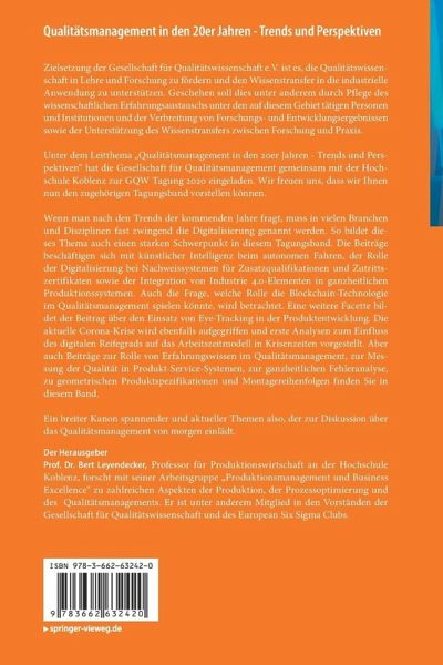Wenn man nach den Trends der kommenden Jahre fragt, muss in vielen Branchen und Disziplinen fast zwingend die Digitalisierung genannt werden. So bildet dieses Thema auch einen starken Schwerpunktin diesem Tagungsband. Die Beiträge beschäftigen sich mit künstlicher Intelligenz beim autonomen Fahren, der Rolle der Digitalisierung bei Nachweissystemen für Zusatzqualifikationen und Zutrittszertifikaten sowie der Integration von Industrie 4.0-Elementen in ganzheitlichen Produktionssystemen. Auch die Frage, welche Rolle die Blockchain-Technologie im Qualitätsmanagement spielen könnte, wird betrachtet. Eine weitere Facette bildet der Beitrag über den Einsatz von Eye-Tracking in der Produktentwicklung. Die aktuelle Corona-Krise wird ebenfalls aufgegriffen und erste Analysen zum Einfluss des digitalen Reifegrads auf das Arbeitszeitmodell in Krisenzeiten vorgestellt. Aber auch Beiträge zur Rolle von Erfahrungswissen im Qualitätsmanagement, zur Messung der Qualität in Produkt-Service-Systemen, zur ganzheitlichen Fehleranalyse, zu geometrischen Produktspezifikationen und Montagereihenfolgen finden Sie in diesem Band.