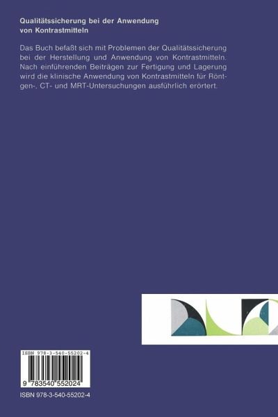 Das Buch befasst sich mit Problemen der Qualitätssicherung bei der Herstellung und Anwendung von Kontrastmitteln. Nach einführenden Beiträgen zur Fertigung und Lagerung wird die klinische Anwendung von Kontrastmitteln für Röntgen-, CT- und MRT-Untersuchungen ausführlich erörtert.