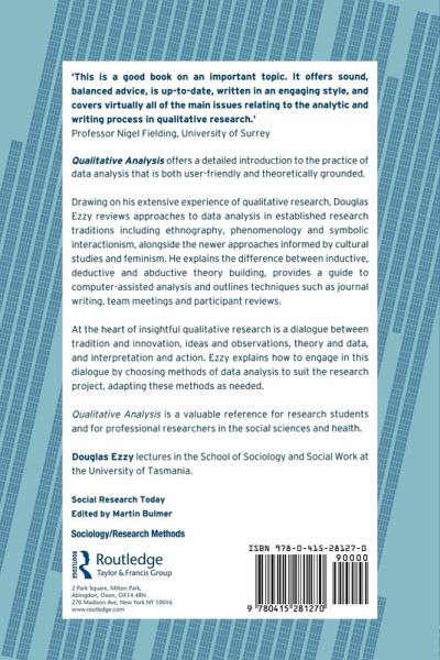 Douglas Ezzy explains the difference between inductive, deductive and abductive theory building, provides a guide to computer-assisted analysis and outlines techniques such as journal writing, team meetings and participant reviews.