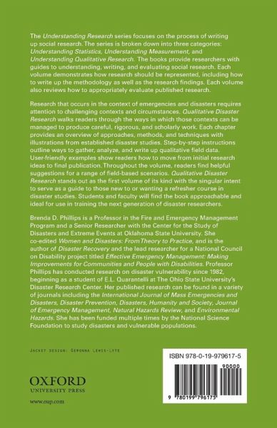 Research that occurs in the context of emergencies and disasters requires attention to challenging contexts and circumstances. This book walks readers through the ways in which those contexts can be managed to produce careful, rigorous, and scholarly work. Students and faculty will find the book both approachable and inspiring and perfect for use in training the next generation of disaster researchers.
