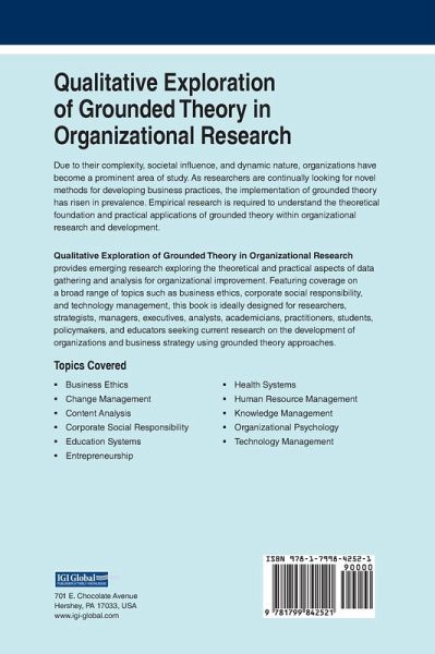 Due to their complexity, societal influence, and dynamic nature, organizations have become a prominent area of study. As researchers are continually looking for novel methods for developing business practices, the implementation of grounded theory has risen in prevalence. Empirical research is required to understand the theoretical foundation and practical applications of grounded theory within organizational research and development. Qualitative Exploration of Grounded Theory in Organizational Research provides emerging research exploring the theoretical and practical aspects of data gathering and analysis for organizational improvement. Featuring coverage on a broad range of topics such as business ethics, corporate social responsibility, and technology management, this book is ideally designed for researchers, strategists, managers, executives, analysts, academicians, practitioners, students, policymakers, and educators seeking current research on the development of organizations and business strategy using grounded theory approaches.