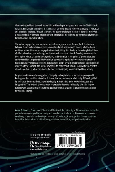 What are the problems to which materialist methodologies are posed as a solution? In this book, Aaron M. Kuntz maps the impact of materialism on contemporary practices of inquiry in education and the social sciences. Through this work, the author challenges readers to consider inquiry as a mode of ethically engaged citizenship with implications for resisting our contemporary moment towards a more equitable future. The author engages his own inquiry as radical cartographic work, drawing forth distinctions between dialectical and dialogic formations of materialism in order to develop what he terms relational materialism-an engaged orientation to living that dwells in the entangled relations of affirmative ethics and enduring practices of resistance and refusal. Drawing upon examples from higher education, contemporary culture, and normative assumptions of governance, the author considers the potential that we might generate living alternatives to the contemporary status quo; daily practices no longer dependent on binary division or standardized calculations of what "matters." As such, the author advocates for practices of virtuous inquiry (future-orientated ethical assertions of what one should do) that orient inquiry as materially ethical activity. Despite the often-overwhelming state of inequity and exploitation in our contemporary world, Kuntz generates an affirmative ethical stance that we can become relationally different, guided by a virtuous determination to articulate inquiry as the cartographic work of disruption and imagination. This text will prove valuable to graduate students and faculty who take inquiry seriously and seek the means to understand their work as engaged in the necessary challenge for material change.