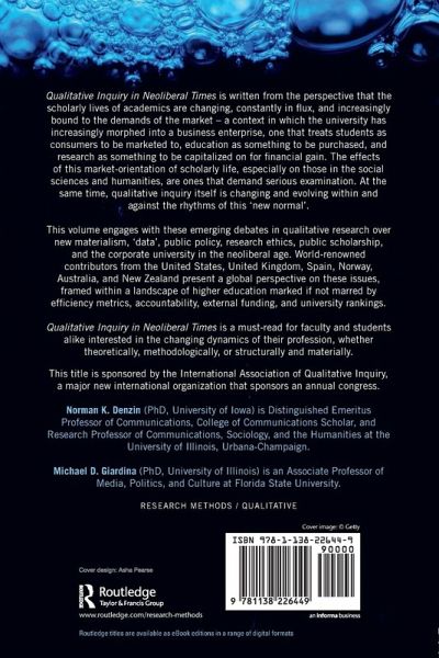Qualitative Inquiry in Neoliberal Times is written from the perspective that the scholarly lives of academics are changing, constantly in flux, and increasingly bound to the demands of the market - a context in which the university has increasingly morphed into a business enterprise, one that treats students as consumers to be marketed to, education as something to be purchased, and research as something to be capitalized on for financial gain. The effects of this market-orientation of scholarly life, especially on those in the social sciences and humanities, are ones that demand serious examination. At the same time, qualitative inquiry itself is changing and evolving within and against the rhythms of this 'new normal'. This volume engages with these emerging debates in qualitative research over new materialism, 'data', public policy, research ethics, public scholarship, and the corporate university in the neoliberal age. World-renowned contributors from the United States, United Kingdom, Spain, Norway, Australia, and New Zealand present a global perspective on these issues, framed within a landscape of higher education marked if not marred by efficiency metrics, accountability, external funding, and university rankings. Qualitative Inquiry in Neoliberal Times is a must-read for faculty and students alike interested in the changing dynamics of their profession, whether theoretically, methodologically, or structurally and materially. This title is sponsored by the International Association of Qualitative Inquiry, a major new international organization that sponsors an annual congress.