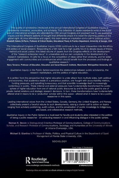 Qualitative Inquiry in the Public Sphere examines the relationships between public scholarship, the research marketplace, and the politics of higher education.¿ It is written from the perspective that higher education is under attack from multiple sides, both political and economic; that academics reside in a precarious position, one fraught with accountability metrics, funding pressures, and spiralling bureaucracy; and that scientific knowledge itself is increasingly contentious in public. These internal and external pressures have fundamentally transformed the public sphere of higher education from one of rational public discourse by and for the public good to one of private market relations and strategic research decisions. In turn, these transformations have fundamentally altered what it means to be a 'productive' scholar within this space-altered what it means to be a public researcher in this space. Leading international voices from the United States, Canada, Germany, the United Kingdom, and Norway collectively present a forceful rebuke to such developments, raising a clarion call to action on topics ranging from scholarly publishing, audit culture, and the privatization of public knowledge to Indigenous, arts-based, and collaborative research methods. Qualitative Inquiry in the Public Sphere is a must-read for faculty and students alike interested in the politics of being a public researcher-of conducting research in and influencing dialogue in the public sphere.