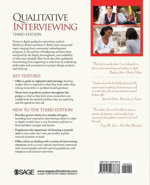 Using in-depth qualitative interviews, authors Herbert J. Rubin and Irene S. Rubin have researched topics ranging from community redevelopment programs to the politics of budgeting and been energized by the depth, thoroughness, and credibility of what was revealed. They describe in-depth qualitative interviewing from beginning to end, from its underlying philosophy and assumptions to project design, analysis and write up.