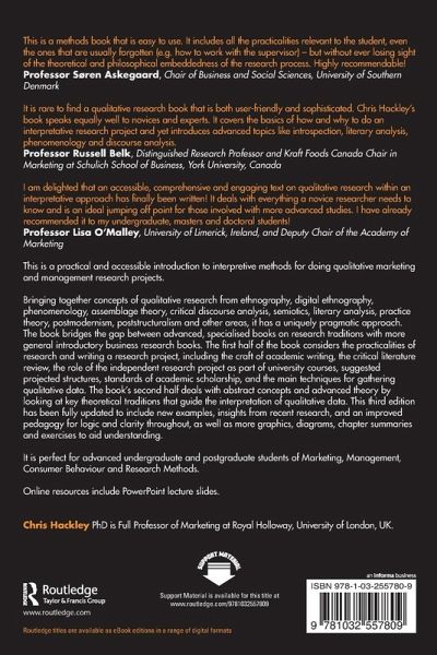 This is a practical and accessible introduction to interpretive methods for doing qualitative marketing and management research projects. It is perfect for advanced undergraduate and postgraduate students of Marketing, Management, Consumer Behaviour and Research Methods.