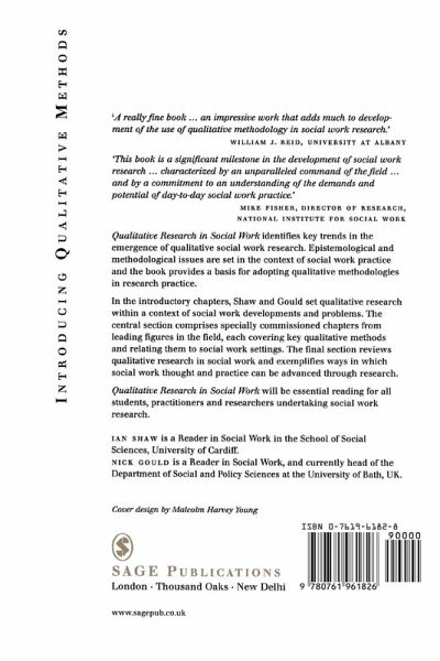 `This book is a significant milestone in the development of social work research. It is characterized by an unparalleled command of the field of qualitative research in social work, and by a commitment to an understanding of the demands and potential of day-to-day social work practice' - Mike Fisher, Director of Research, National Institute for Social Research