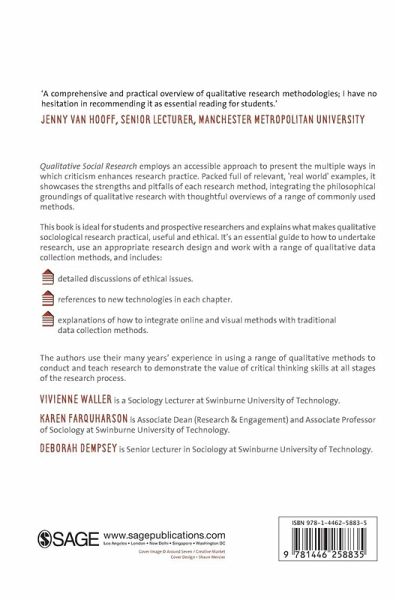 This book is ideal for students and prospective researchers and explains what makes qualitative sociological research practical, useful and ethical. It s an essential guide to how to undertake research, use an appropriate research design and work with a range of qualitative data collection methods, and includes: