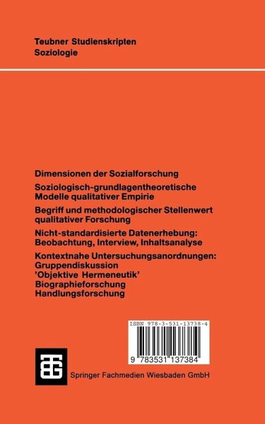Aus dem Inhalt: Dimensionen empirischer Sozialforschung / Grundlagentheoretische Modelle: Interpretatives Paradigma, symbolischer Interaktionismus, Ethnomethodologie, kommunikative Handlungstheorie / Basismethoden nicht-standardisierter Datenerhebung: Freie teilnehmende Beobachtung, offenes Interview, qualitative Inhaltsanalyse / Kontextnahe Untersuchungsanordnungen: Gruppendiskussion, "objektive Hermeneutik", biographische Methode, Handlungsforschung / Qualitative Verfahren in der sozialwissenschaftlichen Forschungsmethodologie