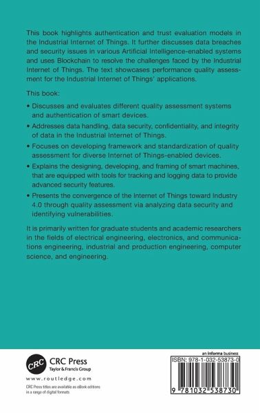 The book highlights authentication and trust evaluation models in the Industrial Internet of Things. It further discusses data breaches and security issues in various Artificial Intelligence-enabled systems and uses Blockchain to resolve the challenges faced by the industrial Internet of Things.