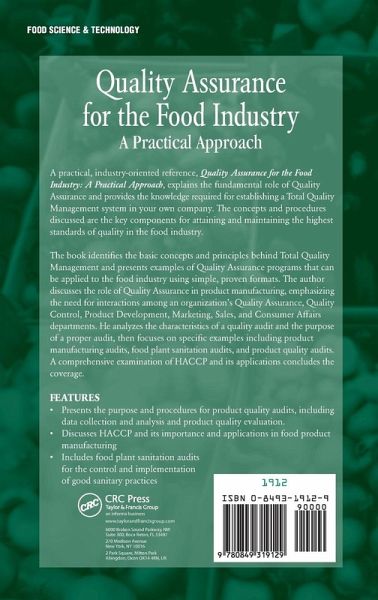 Food companies, regardless of their size and scope, understand that it is impossible to establish a single division devoted to "quality", as quality is the responsibility and purpose of every company employee. Applying this theory demands the cooperation of each employee and an understanding of the methodology necessary to establish, implement, and evaluate a Quality Assurance program. Quality Assurance for the Food Industry: A Practical Approach provides in-depth coverage of all aspects of quality assurance. It identifies the basic concepts and principles behind Total Quality Management and presents examples of Quality Assurance programs that can be applied to the food industry using simple, proven formats. The author discusses the role of Quality Assurance in product manufacturing, emphasizing the need for interactions among an organization's Quality Assurance, Quality Control, Product Development, Marketing, Sales, and Consumer Affairs departments. He analyzes the characteristics of a quality audit and the purpose of a proper audit, then focuses on specific examples including product manufacturing audits, food plant sanitation audits, and product quality audits. A comprehensive examination of HAACP and its applications concludes the coverage. This practical, industry-oriented reference explains the fundamental role of Quality Assurance and provides the knowledge required for establishing a Total Quality Management system in your own company. The concepts and procedures discussed are the key components for attaining and maintaining the highest standards of quality in the food industry.