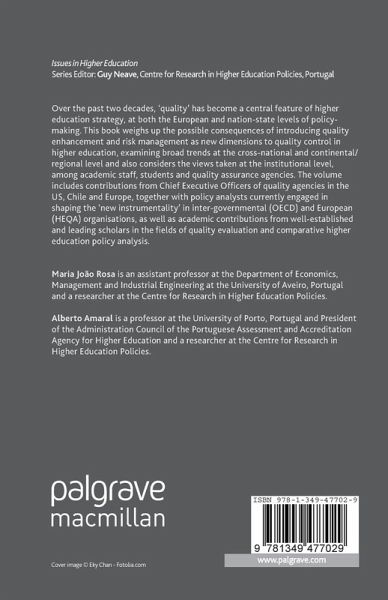 1. Introduction; Maria João Rosa and Alberto Amaral 2. Where are Quality Frontiers Moving to?; Alberto Amaral 3. Quality Enhancement: a New Step in a Risky Business? A Few Adumbrations on its Prospect for Higher Education in Europe; Guy Neave 4. Transparency about Multi-Dimensional Activities and Performance. What can U-Map and U-Multirank Contribute?; Don F. Westerheijden 5. Assessment of Higher Education Learning Outcomes (AHELO): an OECD Feasibility Study; Diana Dias and Alberto Amaral 6. Risk, Trust and Accountability; Colin Raban 7. Risk Management: Implementation; Anthony McClaran 8. Quality Enhancement: an Overview of Lessons from the Scottish Experience; Murray Saunders 9. European Trends in Quality Assurance: New Agendas Beyond the Search for Convergence?; Bjørn Stensaker 10. Recent Trends in US Accreditation; Judith S. Eaton 11. Quality Assurance in Latin America; Maria José Lemaitre 12. The Academic Constituency; Maria João Rosa 13. Students' Views on the Recent Developments in Quality Assurance of Higher Education in Europe; Lylilya Ivanova 14. Recent Trends in Quality Assurance? Observations from the Agencies' Perspective; Achim Hopbach 15. The Swiftly Moving Frontiers of Quality Assurance; Alberto Amaral and Maria João Rosa