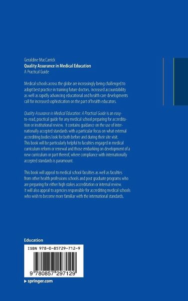 Quality Assurance in Medical Education: A Practical Guide is an easy-to-read, practical guide for any medical school preparing for accreditation or institutional review. It contains guidance on the use of internationally accepted standards with a particular focus on what external accrediting bodies look for both before and during their site visit. This book will be particularly helpful to faculties engaged in medical curriculum reform or renewal and those embarking on development of a new curriculum or part thereof, where compliance with internationally accepted standards is paramount.