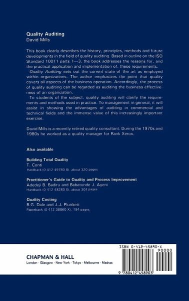 One: An overview of audits.- Where have quality audits come from?.- Auditing status.- Where are quality audits heading?.- Two: What is a quality audit?.- Audit types.- Customer needs.- Audit categories.- Terms and difinitions.- Definitions published in standards.- Applications of definitions.- Three: Why audit?.- Audit objectives.- Compliance.- Effectiveness.- Mandatory audits.- Motivation for audits.- Continuity.- The auditee's motivation for audit.- Relationships between the audit personnel.- Four: The audit maze.- Categories of audit.- Internal Audits.- External audits.- Extrinsic audits?.- Supplier visitations.- A need for sub-categories?.- Further audit definitions.- Audit types.- Performance audits.- Product audits.- Five: Audit boundaries.- Step 1. Reason.- Step 2. Measures.- Step 3. Coverage.- Step 4. Location.- Step 5. Resources.- Audit depth or involvement.- Resources.- Time.- Manpower.- Facilities.- Skills.- Audit scope decision.- Six: Audit personnel.- Personnel with accountability.- Audit team.- Size of team.- The make-up of a team.- Experts.- Observers.- Team selection.- Audit member's tasks and responsibilities.- Lead auditor's general responsibilities.- Lead auditor's specific duties.- Objectivity of audit personnel.- Seven: Auditor qualifications.- Areas of competence.- Knowledge.- Human factors.- Eight: Audit activities.- The preparation phase.- The data collection phase.- Initial review phase.- The reporting phase.- Nine: The audit plan.- The audit plan.- Who is involved?.- Content of the plan.- Pre-announced or suprise audits?.- Ten: Working methods.- Audit assignments.- Solo auditing.- Auditing in pairs.- Team auditing.- Other team members.- Tasking the auditors.- Auditing tools.- To examine by asking questions.- The tactics of questioning.-Understanding the question.- The form of questions.- The summary question.- I may be stupid but?.- Intervals.- Input vs. output questioning.- Applied questioning.- Verification.- Eleven: Guiding the audit.- Audit checklists.- Aide-mémoire.- Guiding the process.- Lower order working documents.- Other working documents.- Twleve: On-site procedure.- Initial or opening meeting.- Examination.- The exit or closing meeting.- The 'buffer' stop situation.- Ethical questions.- Thirteen: Reporting the audit.- 'In-process' reports.- Audit results reporting.- Preparation of the report.- Acceptability of the report.- Strength and weakness reporting.- Corrective action.- Presentation of the report.- Fourteen: Problems during the audit.- Pre-audit problems.- 'On-site' auditing problems.- Timewasting.- Obstructing the audit.- The auditor's difficulties.- Fifteen: Finished?.- Corrective action.- A poser for the auditor.- The final solution?.- Sixteen: Special cases?.- What special cases?.- The single product concept.- The case of the tangible vs. intangible.- Generic quality audits.- The case by definition.- The four categories.- Practical applications.- Conclusion.- Seventeen: Managing an audit programme.- The definition of audit programme management.- The functions of audit programme management.- Audit programme management staff.- Policy and strategy.- Provision of audit staff.- Audit team selection.- Audit performance monitoring.- Monitoring auditors' performance and consistency.- Supplying the required training for auditors.- Audit effectiveness and worth.- Resourcing levels.- Operational review.- Codes of ethics.- Eighteen: Product auditing.- Definition and history.- Developments in product auditing.- Current product auditing processes.- The final goals.- Thecustomer expectation audit (CEA).- Use of the CEA type audit.- The management of a CEA programme.- Nineteen: Economical auditing.- Audit costs.- Sub-contracting the audit.- Systems audit benefits.- Control of systems audit costs.- Product audit benefits.- Control of product audit costs.- Twenty: Auditing at the end of the road.- Past and current status of auditing functions.- A future for the audit role?.- Future auditing methods.- Conclusion.- Twenty-one: Auditing in the ISO 9000 environment.- The first phase revisions.- The ten year review.- Reviews and audits - what's the difference?.- Compliance with the 9000 series standards.- Understanding the standard's requirements.- Relationship between quality systems compliance and product quality.- Does poor performance equal lack of conformity?.- Auditing to the ISO 9000 family of standards from the client's view.- The auditor's viewpoint and responsibilities.- Audit management.- The role of the consultant.- Integration.- References/Bibliography.