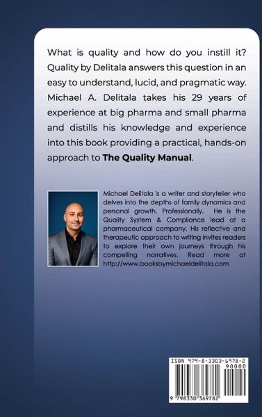 What is quality and how do you instill it? Quality by Delitala answers this question in an easy to understand, lucid, and pragmatic way. Michael A. Delitala takes his 29 years of experience at big pharma and small pharma and distills his knowledge and experience into this book providing a practical, hands-on approach to The Quality Manual.