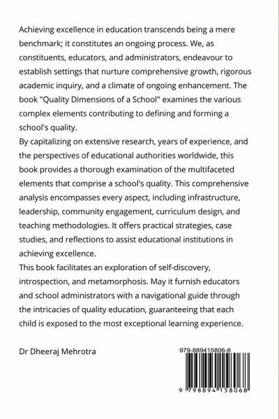 In an era characterized by rapid technological advancements, globalization, and an ever-evolving knowledge economy, the pursuit of quality in academics has never been more critical. Education is the bedrock of societal progress, and its quality determines individual success and the collective advancement of communities and nations. This book aims to explore the multifaceted dimensions of academic excellence and provide a comprehensive guide to achieving and sustaining high standards in educational institutions. The genesis of this book stems from a profound recognition of the challenges and opportunities that educators, administrators, policymakers, and students face today. As we navigate through complexities such as diverse student needs, technological integration, and increasing accountability, redefining and upholding quality in all aspects of academic life is imperative. This book endeavors to address these challenges by offering insights, strategies, and practical solutions grounded in research and best practices.