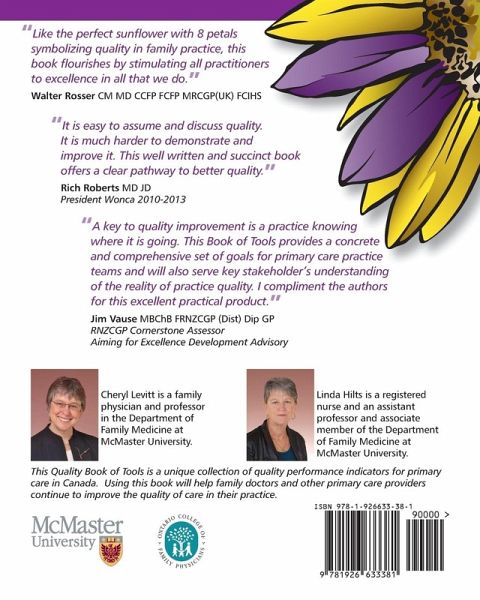 This Quality Book of Tools is a unique collection of quality performance indicators for primary care in Canada. Using this book will help family doctors and other primary care providers continue to improve the quality of care in their practice. Cheryl Levitt (MBBCh CCFP FCFP) is a family physician and professor in the Department of Family Medicine at McMaster University. Linda Hilts (RN BScN MEd) is a registered nurse and an assistant professor and associate member of the Department of Family Medicine at McMaster University.