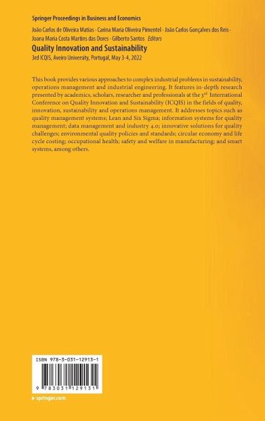 This book provides various approaches to complex industrial problems in sustainability, operations management and industrial engineering. It features in-depth research presented by academics, scholars, researcher and professionals at the 3 rd International Conference on Quality Innovation and Sustainability (ICQIS) in the fields of quality, innovation, sustainability and operations management. It addresses topics such as quality management systems; Lean and Six Sigma; information systems for quality management; data management and industry 4.0; innovative solutions for quality challenges;…mehr