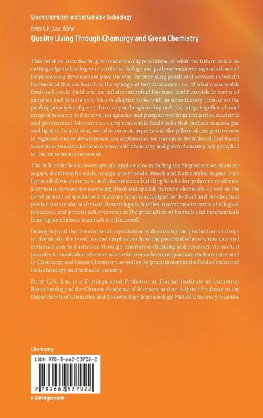 Going beyond the conventional expectation of discussing the production of drop-in chemicals, the book instead emphasizes how the potential of new chemicals and materials can be harnessed through innovative thinking and research. As such, it provides an invaluable reference source for researchers and graduatestudents interested in Chemurgy and Green Chemistry, as well as for practitioners in the field of industrial biotechnology and biobased industry.