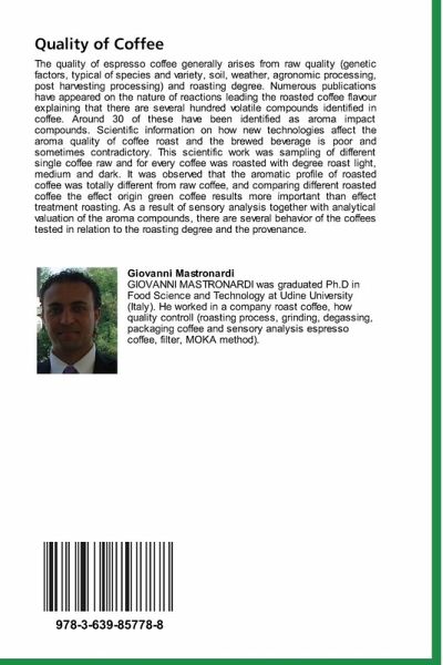 The quality of espresso coffee generally arises from raw quality (genetic factors, typical of species and variety, soil, weather, agronomic processing, post harvesting processing) and roasting degree. Numerous publications have appeared on the nature of reactions leading the roasted coffee flavour explaining that there are several hundred volatile compounds identified in coffee. Around 30 of these have been identified as aroma impact compounds. Scientific information on how new technologies affect the aroma quality of coffee roast and the brewed beverage is poor and sometimes contradictory. This scientific work was sampling of different single coffee raw and for every coffee was roasted with degree roast light, medium and dark. It was observed that the aromatic profile of roasted coffee was totally different from raw coffee, and comparing different roasted coffee the effect origin green coffee results more important than effect treatment roasting. As a result of sensory analysis together with analytical valuation of the aroma compounds, there are several behavior of the coffees tested in relation to the roasting degree and the provenance.
