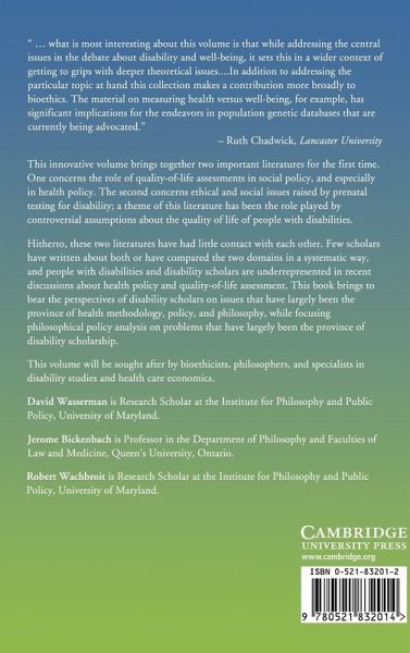 The concern for the role of quality assessments in social policy, especially health policy and ethical and social issues raised by prenatal testing for disability are here discussed.