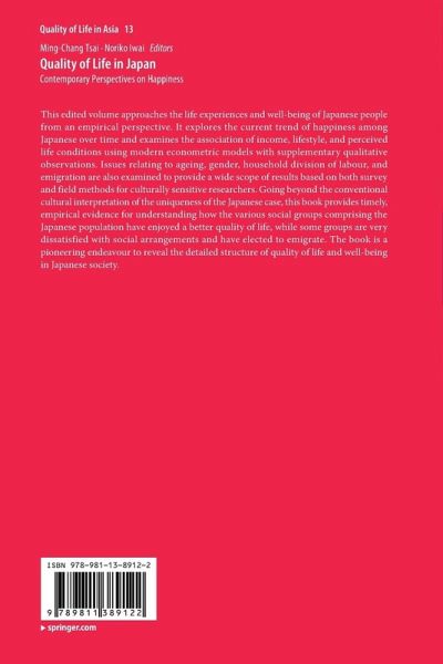 This edited volume approaches the life experiences and well-being of Japanese people from an empirical perspective. It explores the current trend of happiness among Japanese over time and examines the association of income, lifestyle, and perceived life conditions using modern econometric models with supplementary qualitative observations. Issues relating to ageing, gender, household division of labour, and emigration are also examined to provide a wide scope of results based on both survey and field methods for culturally sensitive researchers. Going beyond the conventional cultural interpretation of the uniqueness of the Japanese case, this book provides timely, empirical evidence for understanding how the various social groups comprising the Japanese population have enjoyed a better quality of life, while some groups are very dissatisfied with social arrangements and have elected to emigrate. The book is a pioneering endeavour to reveal the detailed structure ofquality of life and well-being in Japanese society.