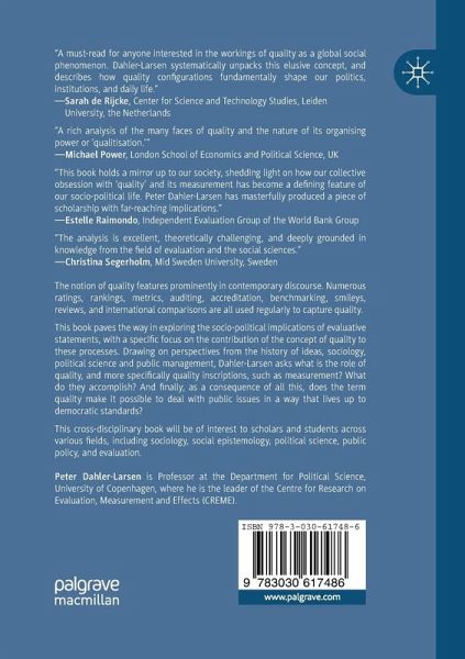 This book paves the way in exploring the socio-political implications of evaluative statements, with a specific focus on the contribution of the concept of quality to these processes. Drawing on perspectives from the history of ideas, sociology, political science and public management, Dahler-Larsen asks what is the role of quality, and more specifically quality inscriptions, such as measurement? What do they accomplish? And finally, as a consequence of all this, does the term quality make it possible to deal with public issues in a way that lives up to democratic standards?