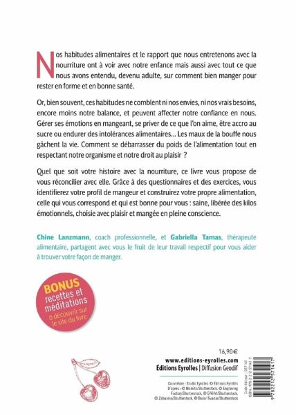 Nos habitudes alimentaires et le rapport que nous entretenons avec la nourriture ont à voir avec notre enfance mais aussi avec tout ce que nous avons entendu, devenu adulte, sur comment bien manger pour rester en forme et en bonne santé.Or, bien souvent, ces habitudes ne comblent ni nos envies, ni nos vrais besoins, encore moins notre balance, et peuvent affecter notre confiance en nous. Gérer ses émotions en mangeant, se priver de ce que l'on aime, être accro au sucre ou endurer des intolérances alimentaires... Les maux de la bouffe nous gâchent la vie. Comment se débarrasser du poids de l'alimentation tout en respectant notre organisme et notre droit au plaisir ?Quel que soit votre histoire avec la nourriture, ce livre vous propose de vous réconcilier avec elle. Grâce à des questionnaires et des exercices, vous identifierez votre profil de mangeur et construirez votre propre alimentation, celle qui vous correspond et qui est bonne pour vous: saine, libéree des kilos émotionnels, choisie avec plaisir et manger en pleine conscience.