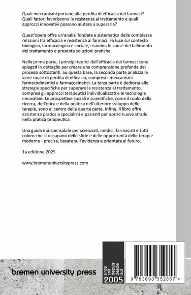 Quali meccanismi portano alla perdita di efficacia dei farmaci? Quali fattori favoriscono la resistenza al trattamento e quali approcci innovativi possono aiutare a superarla? Quest'opera offre un'analisi fondata e sistematica delle complesse relazioni tra efficacia e resistenza ai farmaci. Fa luce sul contesto biologico, farmacologico e sociale, esamina le cause del fallimento del trattamento e presenta soluzioni pratiche. Nella prima parte, i principi teorici dell'efficacia dei farmaci sono spiegati in dettaglio per creare una comprensione profonda dei processi sottostanti. Su questa base, la seconda parte analizza le varie cause di perdita di efficacia, compresi i meccanismi farmacodinamici e farmacocinetici. La terza parte è dedicata alle strategie specifiche per superare la resistenza al trattamento, compresi gli approcci terapeutici individualizzati e le tecnologie innovative. Le prospettive sociali e scientifiche, come il ruolo della ricerca, dell'etica e della politica nell'ulteriore sviluppo delle terapie, sono al centro della quarta parte. Infine, il libro offre assistenza pratica a specialisti e pazienti per aprire nuove strade nella pratica terapeutica. Una guida indispensabile per scienziati, medici, farmacisti e tutti coloro che si occupano delle sfide e delle opportunità delle terapie moderne - precisa, basata sull'evidenza e orientata al futuro. 1a edizione 2025