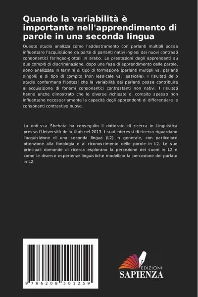 Questo studio analizza come l'addestramento con parlanti multipli possa influenzare l'acquisizione da parte di parlanti nativi inglesi dei nuovi contrasti consonantici faringeo-glottali in arabo. Le prestazioni degli apprendenti su due compiti di discriminazione, dopo una fase di apprendimento delle parole, sono analizzate in termini di tipo di formazione (parlanti multipli vs. parlanti singoli) e di tipo di compito (non lessicale vs. lessicale). I risultati dello studio confermano l'ipotesi che la variabilità dei parlanti possa contribuire all'acquisizione di fonemi consonantici contrastanti non nativi. I risultati hanno anche dimostrato che le diverse richieste di compito spesso non influenzano necessariamente la capacità degli apprendenti di differenziare le consonanti contrastive nuove.