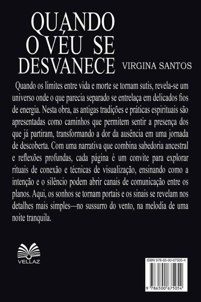 Quando O Véu Se Desvanece - Encontros Espirituais e Energias Sutis Quando os limites entre vida e morte se tornam sutis, revela-se um universo onde o que parecia separado se entrelaça em delicados fios de energia. Nesta obra, as antigas tradições e práticas espirituais são apresentadas como caminhos que permitem sentir a presença dos que já partiram, transformando a dor da ausência em uma jornada de descoberta.Com uma narrativa que combina sabedoria ancestral e reflexões profundas, cada página é um convite para explorar rituais de conexão e técnicas de visualização, ensinando como a intenção e o silêncio podem abrir canais de comunicação entre os planos. Aqui, os sonhos se tornam portais e os sinais se revelam nos detalhes mais simples-no sussurro do vento, na melodia de uma noite tranquila.A obra transforma o luto em um caminho de reencontros sutis, onde a saudade se renova em forma de esperança. Os ensinamentos se desdobram em práticas que revelam que o amor e os laços de afeto não se desfazem com a morte, mas encontram novas maneiras de se manifestar. Este é um convite para aqueles que sentem o chamado de compreender o que está além do visível, em busca de respostas que só podem ser encontradas nas profundezas da alma.