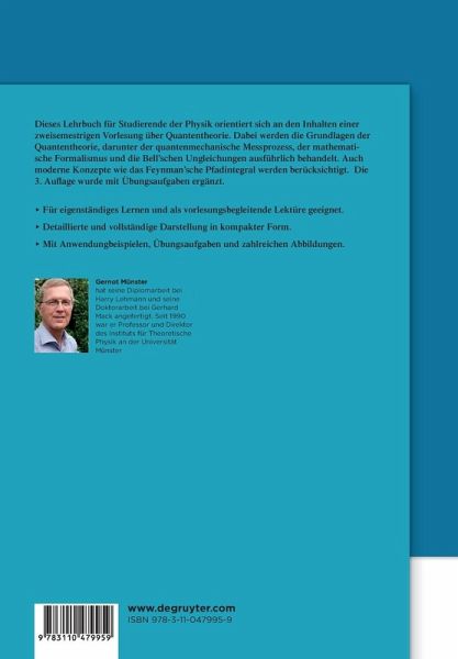 Dieses Lehrbuch für Studierende der Physik orientiert sich in der Stoffauswahl an den Inhalten einer zweisemestrigen Vorlesung über Quantentheorie. Dabei werden die Grundlagen der Quantentheorie, darunter der quantenmechanische Messprozess, der mathematische Formalismus und die Bell'schen Ungleichungen ausführlich behandelt. Auch moderne Konzepte wie das Feynman'sche Pfadintegral werden berücksichtigt.