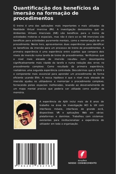 O treino é uma das aplicações mais importantes e mais utilizadas da Realidade Virtual imersiva (RV). A investigação demonstrou que os Ambientes Virtuais Imersivos (IVE) são benéficos para o treino de actividades motoras e espaciais, mas não é claro se os IVE imersivos são benéficos para actividades puramente mentais, como a memorização de um procedimento. Neste livro, apresentamos duas experiências para identificar os benefícios da imersão para um processo de treino de procedimentos. A primeira experiência é uma experiência entre sujeitos que compara dois níveis de imersão numa tarefa de treino de procedimentos. Verificámos que o nível mais elevado de imersão resultou num desempenho significativamente mais rápido da tarefa e numa redução dos erros no procedimento complexo. Como resultado da primeira experiência, realizámos uma segunda experiência controlada. Descobrimos que a SFOV é o componente mais essencial para aprender um procedimento de forma eficiente usando EIVs. A nossa hipótese é que o nível mais elevado de imersão ajudou os utilizadores a memorizar o procedimento complexo, fornecendo pistas espaciais melhoradas, levando ao desenvolvimento de um mapa mental preciso que poderia ser utilizado como auxiliar de memória.
