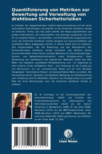 Im Zeitalter der allgegenwärtigen mobilen Datenverarbeitung und der damit verbundenen Bedrohungen und Angriffe ist die Sicherheit drahtloser Geräte ein kritisches Thema, das fast jeden betrifft. Von Regierungsbehörden und großen Unternehmen, die Cyberangriffen und Spionage ausgesetzt sind, bis hin zu einzelnen Nutzern, die Identitäts- und Finanzdiebstahl ausgesetzt sind, muss die Sicherheit drahtloser Geräte dringend auf wissenschaftliche und quantitative Weise angegangen werden. In dieser Arbeit wird ein Software-Tool vorgeschlagen, das die Bewertung und das Management des Sicherheitsrisikos drahtloser Geräte erleichtert. Das Wireless Device Security Risk Meter bietet dieses wichtige Werkzeug für Entscheidungsträger, System- und Netzwerkadministratoren sowie Einzelpersonen. Unter Verwendung der Spieltheorie und statistischer Methoden bietet das Risk Meter eine objektive, quantitative Risikobewertung und - im Gegensatz zu allen anderen heute verfügbaren Tools - eine Anleitung fürdie Zuweisung von Ressourcen, um ein unerwünschtes Risiko auf ein vom Benutzer festgelegtes "tolerierbares Niveau" auf kosteneffektive Weise zu senken. Die Verwendung dieses rationalen und objektiven Werkzeugs zur Risikobewertung und -minderung wird für Behörden, Industrie und Privatpersonen eine große Hilfe bei ihren Bemühungen sein, die Sicherheit drahtloser Geräte zu erhöhen.