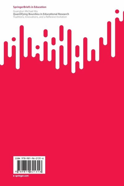 This book revolves around the rationale, urgency, and application of quantifying Bourdieu in educational research. It begins with a succinct revisit to Bourdieu's methodological pluralism and quantitative program, and a critical review of existing but limited Bourdieusian quantitative educational studies, establishing the theoretical, methodological, and contextual foundations for empirical applications of quantitative methodology in Bourdieusian educational research. The book then presents three examples of such empirical applications as individual chapters, utilising multiple correspondence analysis and social network analysis. These chapters respectively examine social class and educational mobility, teacher resilience and teacher education, and social grouping and social change. The book concludes with a proposal to mobilise a range of 'relational' quantitative methodologies - including factor analysis, cluster analysis, logistic regression, multilevel modelling, and cross-lagged panel model - within a Bourdieusian remit, and extends a reflexive invitation to quantify Bourdieu in educational research.