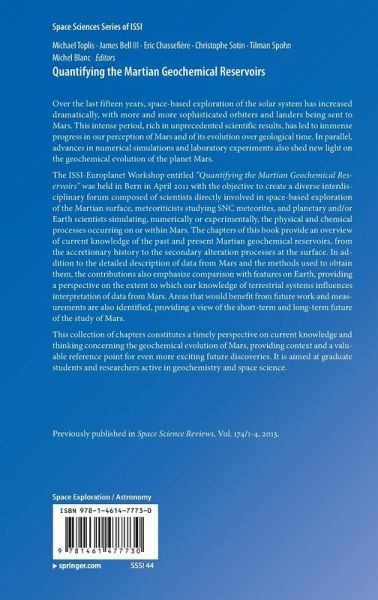 The ISSI-Europlanet Workshop entitled "Quantifying the Martian Geochemical Reservoirs" was held in Bern in April 2011 with the objective to create a diverse interdisciplinary forum composed of scientists directly involved in space-based exploration of the Martian surface, meteoriticists studying SNC meteorites, and planetary and/or Earth scientists simulating, numerically or experimentally, the physical and chemical processes occurring on or within Mars. The chapters of this book provide an overview of current knowledge of the past and present Martian geochemical reservoirs, from the accretionary history to the secondary alteration processes at the surface. In addition to the detailed description of data from Mars and the methods used to obtain them, the contributions also emphasize comparison with features on Earth, providing a perspective on the extent to which our knowledge of terrestrial systems influences interpretation of data from Mars. Areas that would benefit from future work and measurements are also identified, providing a view of the short-term and long-term future of the study of Mars.