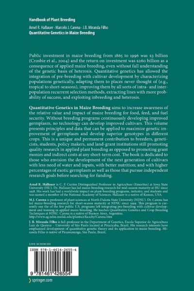 Maize is used in an endless list of products that are directly or indirectly related to human nutrition and food security. Maize is grown in producer farms, farmers depend on genetically improved cultivars, and maize breeders develop improved maize cultivars for farmers. Nikolai I. Vavilov defined plant breeding as plant evolution directed by man. Among crops, maize is one of the most successful examples for breeder-directed evolution. Maize is a cross-pollinated species with unique and separate male and female organs allowing techniques from both self and cross-pollinated crops to be utilized. As a consequence, a diverse set of breeding methods can be utilized for the development of various maize cultivar types for all economic conditions (e.g., improved populations, inbred lines, and their hybrids for different types of markets). Maize breeding is the science of maize cultivar development. Public investment in maize breeding from 1865 to 1996 was $3 billion (Crosbie et al., 2004) and the return on investment was $260 billion as a consequence of applied maize breeding, even without full understanding of the genetic basis of heterosis. The principles of quantitative genetics have been successfully applied by maize breeders worldwide to adapt and improve germplasm sources of cultivars for very simple traits (e.g. maize flowering) and very complex ones (e.g., grain yield). For instance, genomic efforts have isolated early-maturing genes and QTL for potential MAS but very simple and low cost phenotypic efforts have caused significant and fast genetic progress across genotypes moving elite tropical and late temperate maize northward with minimal investment. Quantitative genetics has allowed the integration of pre-breeding with cultivar development by characterizing populations genetically, adapting them to places never thought of (e.g., tropical to short-seasons), improving them by all sorts of intra- and inter-population recurrent selection methods, extracting lines with more probability of success, and exploiting inbreeding and heterosis. Quantitative genetics in maize breeding has improved the odds of developing outstanding maize cultivars from genetically broad based improved populations such as B73. The inbred-hybrid concept in maize was a public sector invention 100 years ago and it is still considered one of the greatest achievements in plant breeding. Maize hybrids grown by farmers today are still produced following this methodology and there is still no limit to genetic improvement when most genes are targeted in the breeding process. Heterotic effects are unique for each hybrid and exotic genetic materials (e.g., tropical, early maturing) carry useful alleles for complex traits not present in the B73 genome just sequenced while increasing the genetic diversity of U.S. hybrids. Breeding programs based on classical quantitative genetics and selection methods will be the basis for proving theoretical approaches on breeding plans based on molecular markers. Mating designs still offer large sample sizes when compared to QTL approaches and there is still a need to successful integration of these methods. There is a need to increase the genetic diversity of maize hybrids available in the market (e.g., there is a need to increase the number of early maturing testers in the northern U.S.). Public programs can still develop new and genetically diverse products not available in industry. However, public U.S. maize breeding programs have either been discontinued or are eroding because of decreasing state and federal funding toward basic science. Future significant genetic gains in maize are dependent on the incorporation of useful and unique genetic diversity not available in industry (e.g., NDSU EarlyGEM lines). The integration of pre-breeding methods with cultivar development should enhance future breeding efforts to maintain active public breeding programs not only adapting and improving genetically broad-based germplasm but also developing unique products and training the next generation of maize breeders producing research dissertations directly linked to breeding programs. This is especially important in areas where commercial hybrids are not locally bred. More than ever public and private institutions are encouraged to cooperate in order to share breeding rights, research goals, winter nurseries, managed stress environments, and latest technology for the benefit of producing the best possible hybrids for farmers with the least cost. We have the opportunity to link both classical and modern technology for the benefit of breeding in close cooperation with industry without the need for investing in academic labs and time (e.g., industry labs take a week vs months/years in academic labs for the same work). This volume, as part of the Handbook of Plant Breeding series, aims to increase awareness of the relative value and impact of maize breeding for food, feed, and fuel security. Without breeding programs continuously developing improved germplasm, no technology can develop improved cultivars. Quantitative Genetics in Maize Breeding presents principles and data that can be applied to maximize genetic improvement of germplasm and develop superior genotypes in different crops. The topics included should be of interest of graduate students and breeders conducting research not only on breeding and selection methods but also developing pure lines and hybrid cultivars in crop species. This volume is a unique and permanent contribution to breeders, geneticists, students, policy makers, and land-grant institutions still promoting quality research in applied plant breeding as opposed to promoting grant monies and indirect costs at any short-term cost. The book is dedicated to those who envision the development of the next generation of cultivars with less need of water and inputs, with better nutrition; and with higher percentages of exotic germplasm as well as those that pursue independent research 