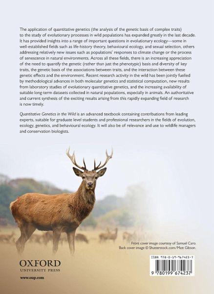 This book gathers the expertise of 30 evolutionary biologists from around the globe to highlight how applying the field of quantitative genetics - the analysis of the genetic basis of complex traits - aids in the study of wild populations.