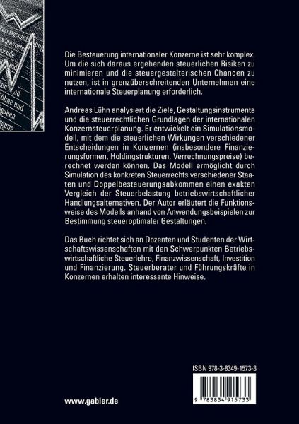 Andreas Lühn analysiert die Ziele, Gestaltungsinstrumente und die steuerrechtlichen Grundlagen der internationalen Konzernsteuerplanung. Er entwickelt ein Simulationsmodell, mit dem die steuerlichen Wirkungen verschiedener Entscheidungen in Konzernen (insbesondere Finanzierungsformen, Holdingstrukturen, Verrechnungspreise) berechnet werden können. Das Modell ermöglicht durch Simulation des konkreten Steuerrechts verschiedener Staaten und Doppelbesteuerungsabkommen einen exakten Vergleich der Steuerbelastung betriebswirtschaftlicher Handlungsalternativen. Der Autor erläutert die Funktionsweise des Modells anhand von Anwendungsbeispielen zur Bestimmung steueroptimaler Gestaltungen.