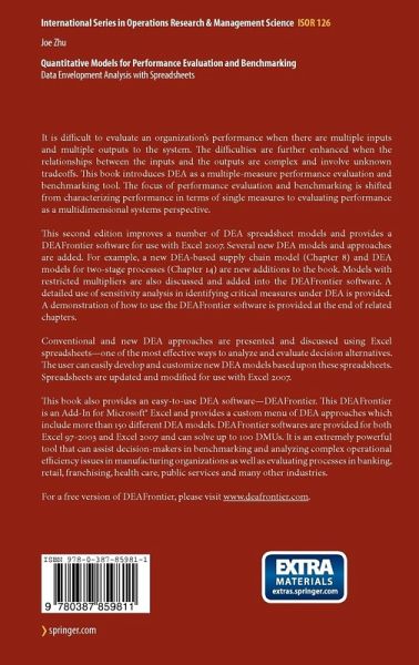 Managers are often under great pressure to improve the performance of their organizations. To improve performance, one needs to constantly evaluate operations or processes related to producing products, providing services, and marketing and selling products. Performance evaluation and benchmarking are a widely used method to identify and adopt best practices as a means to improve performance and increase productivity, and are particularly valuable when no objective or engineered standard is available to define efficient and effective performance. For this reason, benchmarking is often used in managing service operations, because service standards (benchmarks) are more difficult to define than manufacturing standards. Benchmarks can be established but they are somewhat limited as they work with single measurements one at a time. It is difficult to evaluate an organization's performance when there are multiple inputs and outputs to the system. The difficulties are further enhanced when the relationships between the inputs and the outputs are complex and involve unknown tradeoffs. It is critical to show benchmarks where multiple measurements exist. The current book introduces the methodology of data envelopment analysis (DEA) and its uses in performance evaluation and benchmarking under the context of multiple performance measures.