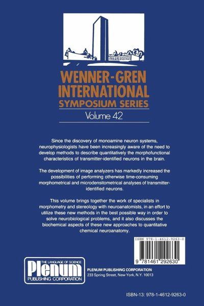 Session I: Morphometrical and Microdensitometrical Studies on Nontransmitter-Identified Neurons.- Quantitative Analysis of Three-dimensional Structures in Neuroanatomy.- Estimating Particle Number and Size.- Tasks in Computer-assisted Neuroanatomy: Data Acquisition, Imaging and Database.- Population Characteristics of Nerve Cell Bodies Illustrated by the Postnatal Development of Cerebellar Granule Cells in the Rat.- Laminar Specificity of Dendritic Morphology: Examples from the Guinea Pig Hippocampal Region.- Studies of Local Blood Flow and Glucose Utilization in Brain by Computer Assisted Autoradiography.- Session II: Morphometry and Microdensitometry of Transmitter-Identified Neurons.- Morphometrical and Microdensitometrical Studies on Monoaminergic and Peptidergic Neurons in the Aging Brain.- Three-dimensional Computer Reconstructions of Catecholaminergic Neuronal Populations in Man.- Topographic Distribution of Catecholaminergic Neurons in the Rat Medulla Oblongata Using Quantitative Three-dimensional Reconstruction.- Effects of Chronic GM1 Ganglioside Treatment on Nigral Dopamine Cell Bodies and Dendrites in Experimental Rats Using Image Analysis¿Relationship to the Pharmacokinetic Properties.- Development of Quantitative Methods for the Evaluation of the Entity of Coexistence of Neuroactive Substances in Nerve Terminal Populations in Discrete Areas of the Central Nervous System: Evidence for Hormonal Regulation of Cotransmission.- Principles for the Construction of the Software for Image Analysis of Transmitter-identified Neurons.- Image Understanding and the Cell World Model.- Quantitative Studies of Rodent and Primate Neocortex: Central Monoamine and Peptide Neurons.- Image Analysis of Catecholamine Fluorescence and Immunofluorescence in Studies on Blood Vessel Innervation.- Image Analysis of Transmitter Identified Neurons Using the IBAS System.- Image Analysis of Neuronal and Glial Markers: Fluorescence Microscopical Applications.- Session III: Quantitative Immunocytochemistry and Amine Fluorescence Histochemistry.- The Use of Quantitative Immunocytochemistry to Study the Regulation of Tyrosine Hydroxylase in Noradrenergic and Dopaminergic Neural Systems.- Quantitative Cytochemical Studies on Catecholaminergic and Peptidergic Nerve Terminals.- Quantitation of Nerve Terminal Networks of Transmitter-identified Neurons after Selective Neurotoxic Lesions.- Cytofluorimetric Scanning: A Quantitative Method to Study Axonal Transport.- Quantitative Microfluorimetry and Semiquantitative Immunocytochemistry as Tools in the Analysis of Transmitter Identified Neurons.- Session IV: Quantitative Receptor and 2-Deoxyglucose.- Quantitative Autoradiographic Localization of Dopamine Receptors and Uptake Sites in the Rat and Human CNS.- The Use of Quantitative Autoradiographic Techniques on the Study of Drug Action in the Brain: Receptor Autoradiography and 2-Deoxyglucose Technique.- Quantitative Autoradiography as a Tool to Study Receptors in Neural Tissue. Studies on 3H-Oubain Binding Sites and Correlation with Synaptic Protein Phosphorylation in Different Brain Areas.- Quantitative Autoradiography of Drug Binding Sites: Methodological Considerations.- Recent Advances in the Visualization and Quantification of Benzodiazepine Receptors.