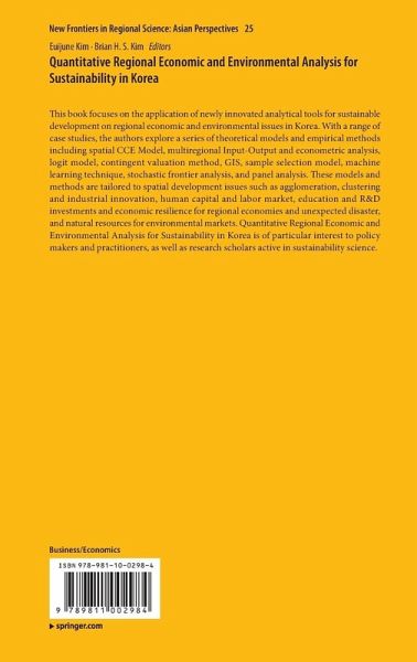 This book focuses on the application of newly innovated analytical tools for sustainable development on regional economic and environmental issues in Korea. With a range of case studies, the authors explore a series of theoretical models and empirical methods including spatial CCE Model, multiregional Input-Output and econometric analysis, logit model, contingent valuation method, GIS, sample selection model, machine learning technique, stochastic frontier analysis, and panel analysis. These models and methods are tailored to spatial development issues such as agglomeration, clustering and industrial innovation, human capital and labor market, education and R&D investments and economic resilience for regional economies and unexpected disaster, and natural resources for environmental markets. Quantitative Regional Economic and Environmental Analysis for Sustainability in Korea is of particular interest to policy makers and practitioners, as well as research scholars active in sustainability science.