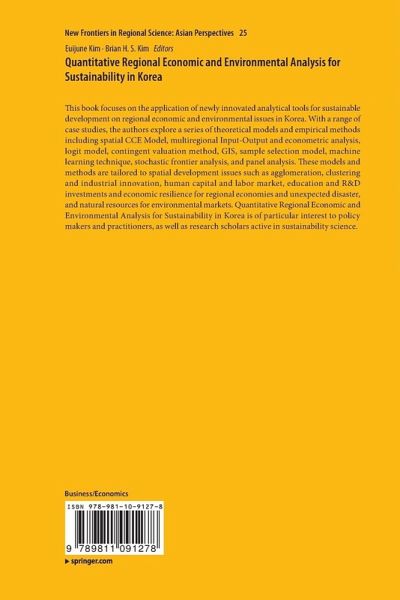 This book focuses on the application of newly innovated analytical tools for sustainable development on regional economic and environmental issues in Korea. With a range of case studies, the authors explore a series of theoretical models and empirical methods including spatial CCE Model, multiregional Input-Output and econometric analysis, logit model, contingent valuation method, GIS, sample selection model, machine learning technique, stochastic frontier analysis, and panel analysis. These models and methods are tailored to spatial development issues such as agglomeration, clustering and…mehr