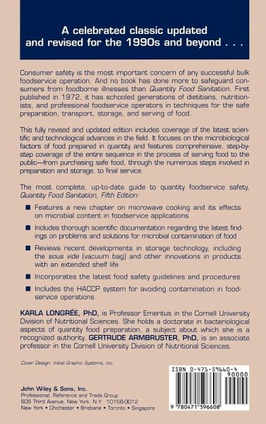 A celebrated classic updated and revised for the 1990s and beyond . . . Consumer safety is the most important concern of any successful bulk foodservice operation. And no book has done more to safeguard consumers from foodborne illnesses than Quantity Food Sanitation. First published in 1972, it has schooled generations of dietitians, nutritionists, and professional foodservice operators in techniques for the safe preparation, transport, storage, and serving of food. This fully revised and updated edition includes coverage of the latest scientific and technological advances in the field. It focuses on the microbiological factors of food prepared in quantity and features comprehensive, step-by-step coverage of the entire sequence in the process of serving food to the public--from purchasing safe food, through the numerous steps involved in preparation and storage, to final service. The most complete, up-to-date guide to quantity foodservice safety, Quantity Food Sanitation, Fifth Edition: * Features a new chapter on microwave cooking and its effects on microbial content in foodservice applications * Includes thorough scientific documentation regarding the latest findings on problems and solutions for microbial contamination of food * Reviews recent developments in storage technology, including the sous vide (vacuum bag) and other innovations in products with an extended shelf life * Incorporates the latest food safety guidelines and procedures * Includes the HACCP system for avoiding contamination in food service operations