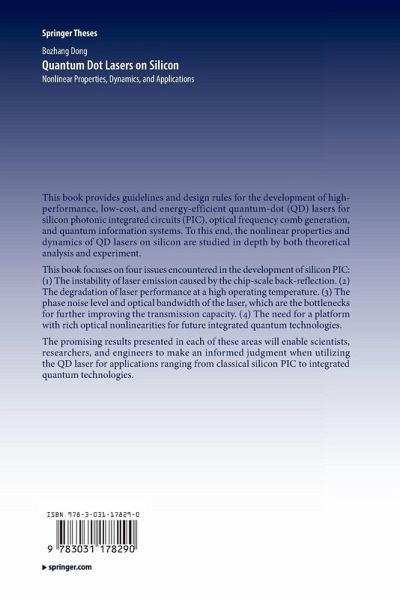 This book provides guidelines and design rules for developing high-performance, low-cost, and energy-efficient quantum-dot (QD) lasers for silicon photonic integrated circuits (PIC), optical frequency comb generation, and quantum information systems. To this end, the nonlinear properties and dynamics of QD lasers on silicon are investigated in depth by both theoretical analysis and experiment.